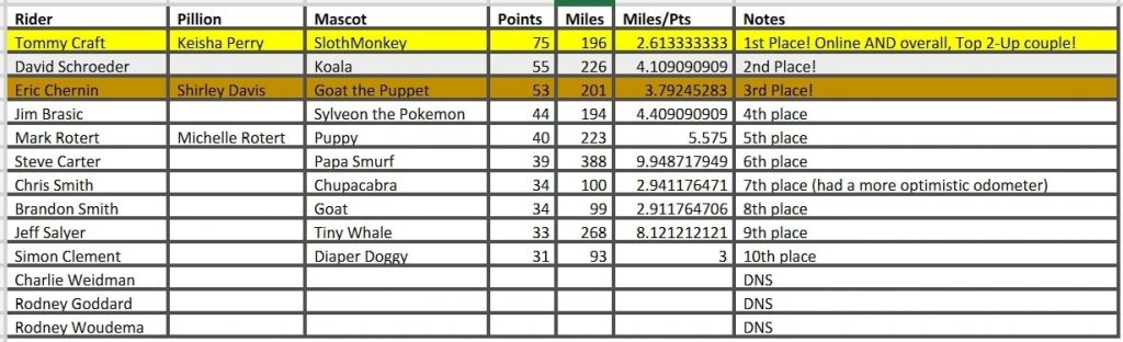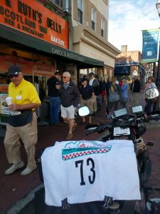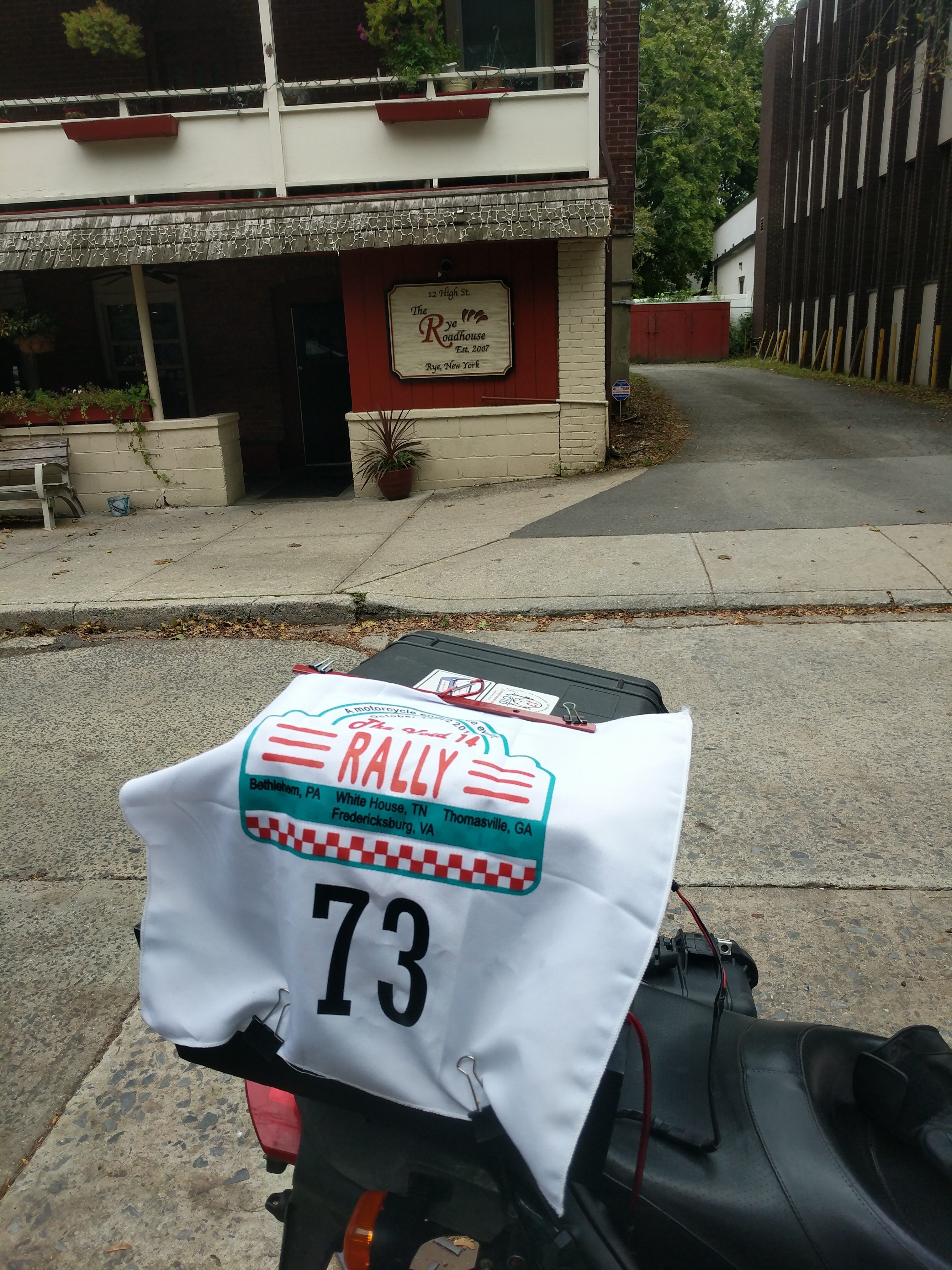 Thursday was a travel day and I hit a number of TOH memorials on the way down to the start in Bethlehem, PA. To get warmed up for the rally. The trip was pretty uneventful. I had one instance of the ongoing vapor-lock problem and decided to play it safe and only run 100 miles on the main tank, which gave me a total range of about 250 miles. Not the range I wanted, but it worked, I didn’t have any further issues on this trip. I had dinner that night with a number of the PA starters and had a good time reconnecting with people I’ve met in the past and meeting some new friends. After diner I returned to my room to try and get some sleep and finish my preparation. I remembered as I was falling asleep that I still needed to send in my route deceleration (worth a few points) and got that done.