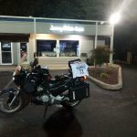 The wind was strong enough that I had to put the bike on the center stand to keep it from being blown off the side stand. The requirement for this bonus was to have the light house and the historical marker sign in the picture. There is a sign in front of the light house that I couldn’t make out due to it being just past sunset, I made the incorrect assumption that this was the required sign, and hoped the picture would be good enough. I did look around to see if there were any other signs that met the requirements but didn’t see any. As I found out at the scoring table, this was not the correct sign, the correct one was only a few feet away, but in my hurry to get out of the wind I missed it. This is officially the first time I’ve lost points for taking a bad picture, I’m sure it wont be the last.