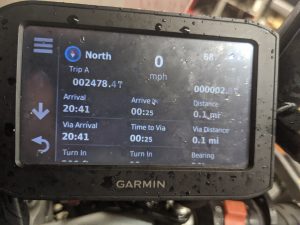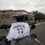 Once in NJ I was repeating part of my route from last years Void hitting several points on the Jersey shore. This was fairly uneventful until I got to long beach. The storm that had gone through the last few days had resulted in some flooded out areas. There were some “puddles” about 6 inches deep completely blocking the road in spots. Going slowly I made it through these areas, but I’m not sure the bike will ever be the same. I’d hoped this might be freshwater rain, but the next time I used the hydration system my hope faded, definitely salt water. On my way back out through the puddles I passed another rally rider, the first I’d seen in quite a while. At the next stop, the Oyster Creek Restaurant, the rider caught up to me as I was trying to figure out the instructions to take a picture of a “Oyster Creek Inn”. The other rider turned out to be Steve Giffin, who’d won this year’s MD2020, and is always a top finisher, once again giving me hope I wasn’t completely off the mark. We decided that the instructions must be in error and I headed out to my rest stop.