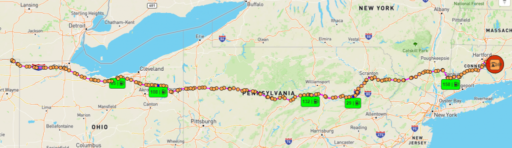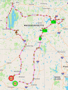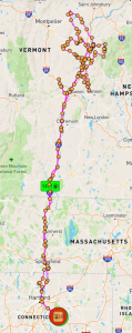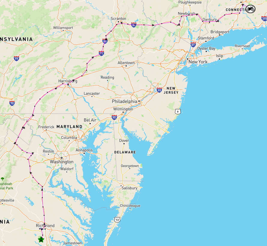 The theme of the rally this year was food, with most of the bonuses being diners or other food related establishments. About a week before the rally, as is typical, we received the bonus locations, but not details via email. I spent the next few days studying the locations and trying to come up with a route I liked. Unlike last year, there wasn’t an obvious best route right out of the gate. There were a high concentration of low to mid point bonuses in the NY City/Long Island area, and more spread out bonuses west and south. The highest theoretical route I could come up with was to sweep Long Island, take the ferry over to CT and come back that way. I wasn’t terribly thrilled about dealing with that traffic and would prefer to ride someplace new though. There was also forecast to be a massive storm system coming through and high probability of the ferry being canceled. Going west you could get close points wise, but were bumping up against the millage cap (1700 miles). Knowing my bike won’t make time on the highway the way some of the bigger bikes will, I felt I’d be at a disadvantage going that way.