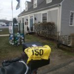 This was the reading comprehension test. The ToH memorial is a bench dedicated to the memory of a local that was killed on September 11th, 2001. There is a much more obvious memorial with a flag poll in the parking lot. I initially pulled up to that one, but my habit of always checking the provided picture payed off and I realized my mistake, took the required picture, despite being probably the windiest site so far, and was on my way. The temperature had started to fall at this point and the electric gear was back on. In the home stretch now, off to RI where the sites are only 15 minutes from each other. I’m feeling good.