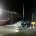 The leg to N02 was a long one, about 2.5 hours, most of which was highway, but there was some winding back roads at the end. As I was approaching the site I could see lightning in the distance and it was starting to sprinkle. I parked under a tree and got my picture. As I’d feared there was no cell service here and I wasn’t sure where to go. I loaded the off-line navigation app I have, and entered the coordinates, but it said I was too far away from a road to be able to calculate it. I didn’t feel like messing with it so I decided to backtrack until I got service. Before doing so I topped off my tanks at the gas station across the street. I hadn’t seen one open in a while and new N03 was even more in the middle of no where and didn’t want to take chances. I back tracked only about a mile or so before I picked up service. I pulled off and let Waze figure out where I was. While I waited a couple of other riders passed by and circled back to make sure I was ok. They offered to let me follow them if I couldn’t get it working which I appreciated, but I was now back on track. All that messing around cost me though, instead of being early I was know pretty much right on my original plan and knew I was going to lose more time getting to the stop. The ride from N02 to N03 were on these narrow, twisty, back roads. They’re the kind of roads that would have been a lot of fun during the day. At night, with a lot of fog and some rain they were just slow going. The last 10 miles or so were on this really windy barely paved road. A lot of riders complained about it, but I kind of liked it, I guess having a dual sport bike helped.