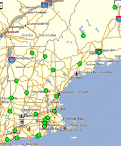 I set the alarm for midnight, but my fire department pager conveniently woke me up at 1150, so by midnight I was dressed and seated at the computer with a cup of coffee. At 0001 the sites were released and I got to work. The first thing I did after importing the gpx file was to copy the New England sites to a separate list in BaseCamp and change their icons to something that would stand out better. I then went down the list of sites and skimmed the descriptions looking for availability and anything else that might effect routing.