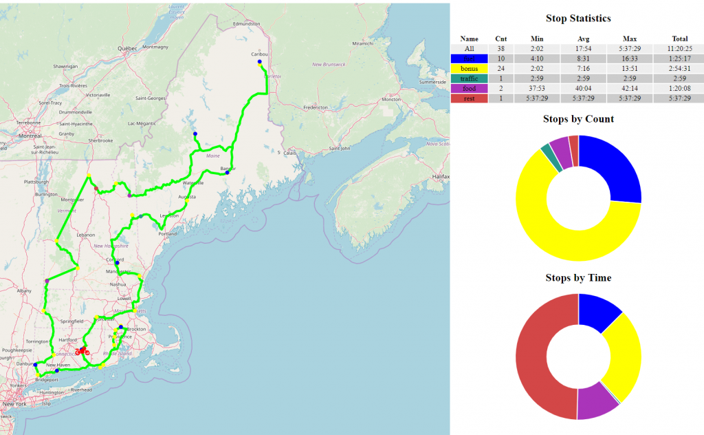 The RI and eastern CT sites are all lined up in a nice row and initially I planned to start there and work my way around counter clockwise, however looking at the timing I was worried about cutting it too close to rush hour in Boston, and more importantly, I really wanted to be out of ME as early as possible. My pre-plan had been to save the southern states till last anyway, so I the plan was made to head to Boston first. In an effort to save time upfront, I did not add layover time at each stop (I wish BaseCamp made that easier). I’ve heard of people doing this, and making up the time enroute rather than planning for it and wanted to see how it work out. (Spoiler: not great)