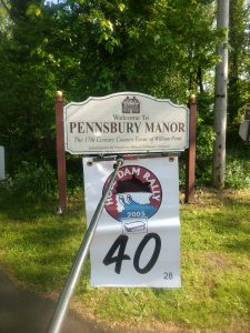 I continued on to Pen Argyle for a heart shaped head stone. It looked like there was burial going on in the back of cemetery I didn’t want to disturb so I snuck in the wrong way to get my picture. It was then on to Plainsboro, NJ for a grave stone for a cow, there has to be a story there… I then headed back into PA for a picture of the Pennsbury Manor sign. I encountered an inquisitive young man here who was very interested in how my bike did on the trails, and how smooth it is. (Given that it only has one cylinder, the answer to the last one is not very). I tried to be polite while not wasting a lot of time.