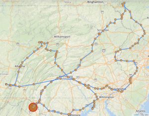 Leaving the Hamiltonian site, I ran into a detour around a local festival of some sort, it brought me out on the back side of a road block where another rally rider was trying to talk his way through. I learned later he was successful. At this point I was running almost an hour ahead of schedule and feeling pretty good about adding the extra stop the day before. Unfortunately I’d also completely lost the Garmin and my backup phone. Neither would charge reliably. Thankfully my main phone was working well, the down side is that it wasn’t really setup for offline navigation as I primarily run Waze on it and use the other two devices for offline stuff. This wasn’t a problem here, but I knew I going to be in the middle of no where PA in the middle of the night and would have been happier with a backup.